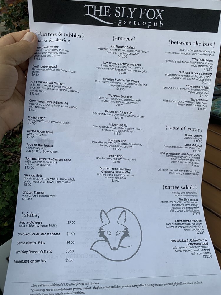 Introducing The Sly Fox, a British gastropub located in Southern Pines, NC. Known for its cozy atmosphere and delicious menu offerings, this restaurant is a must-visit for food enthusiasts. Customer reviews rave about their signature dishes, such as the fish and chips, chicken pot pie, and poutine. The butternut squash ravioli appetizer and haddock fish & chips are also highly recommended. The bar offers a wide selection of drinks, and the friendly staff provides excellent service. With a quaint British vibe and a variety of seating options, including outdoor seating for furry friends, The Sly Fox is the perfect spot for a casual lunch or dinner. Don't miss out on trying their British-made snacks and candies for a unique culinary experience. Overall, a visit to The Sly Fox promises a delightful dining experience with top-notch food and service.